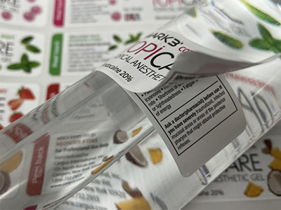 饮品类标签,常见的有水标、酒标。水标我们一般选专用的水标材质,它的防水、耐腐蚀效果比一般材质更好,而且不残胶,可以重复使用。如有特殊工艺,像多层、双面印刷,我们配有专门的柔印机来印制,印刷效率与质量双管齐下。